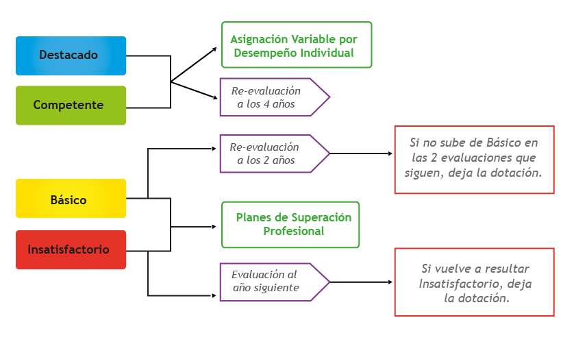 de los establecimientos con mejor desempeño en cada región, este permite evaluar a los docentes en ejercicio con la finalidad de recoger información en cuanto a su nivel de desempeño en las aulas a través de la evaluación docente la cual es evaluada por el Ministerio de Educación, a través del Centro de Perfeccionamiento, Experimentación e Investigaciones Pedagógicas, CPEIP le corresponde la coordinación técnica del proceso de Evaluación Docente, a través de su Área de Acreditación y. Los resultados que estas instituciones entregan en los establecimientos educativos permiten a los directivos evidenciar el nivel con el que fue calificativo su equipo docente.