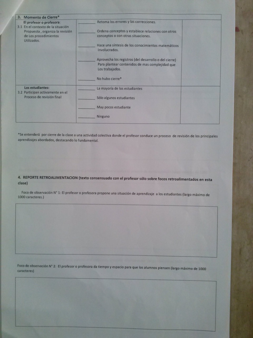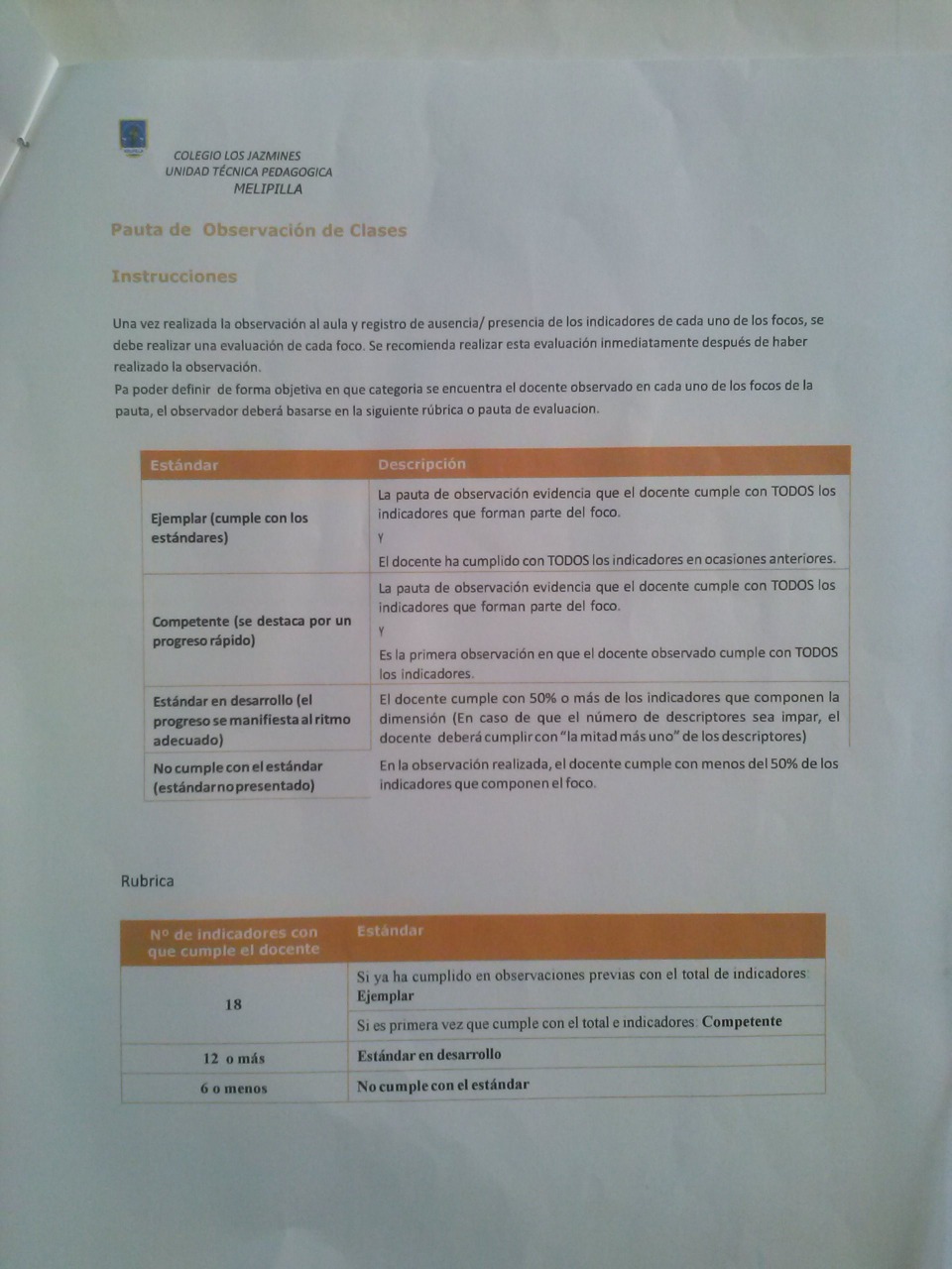Pauta de Autoevaluación: Se estructura en base a una serie de preguntas y a través de ella, se invita al docente a reflexionar sobre su práctica y valorar su propio desempeño profesional.